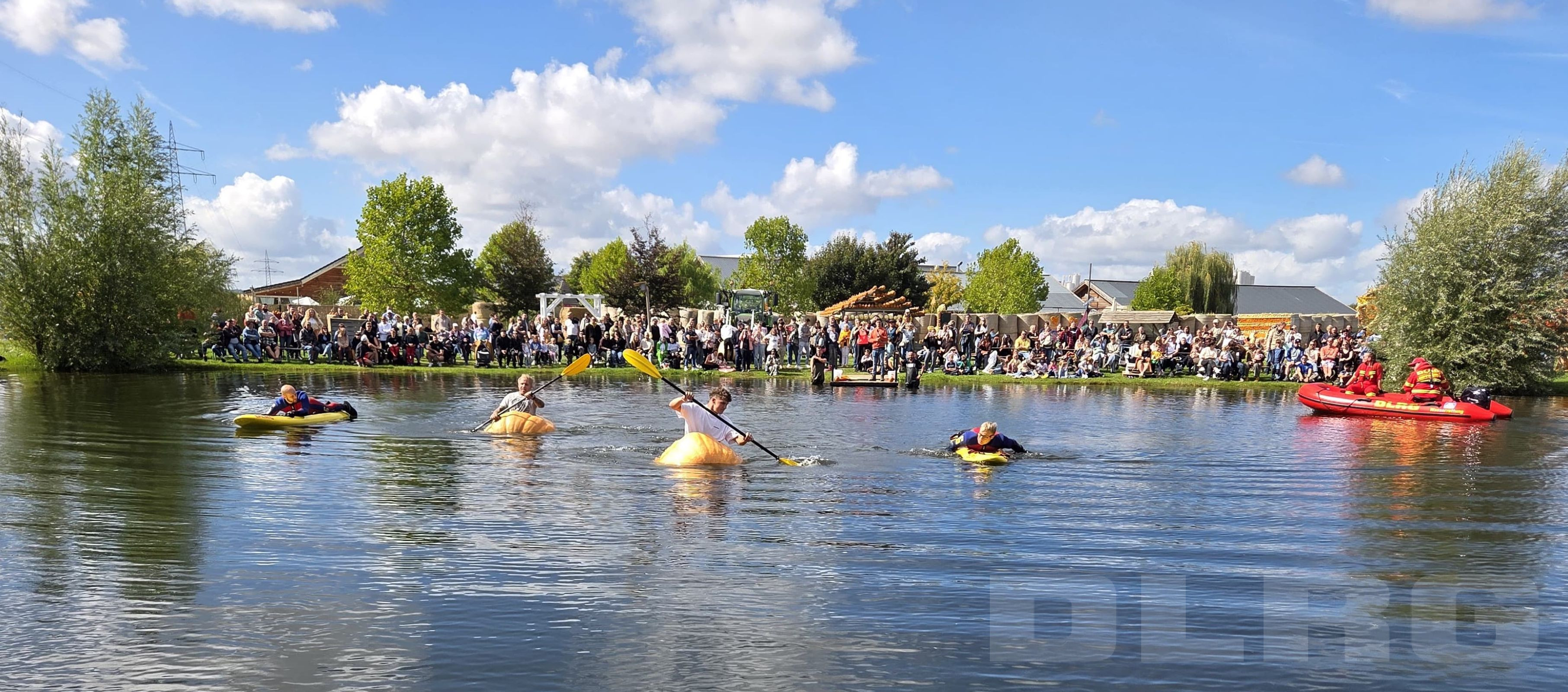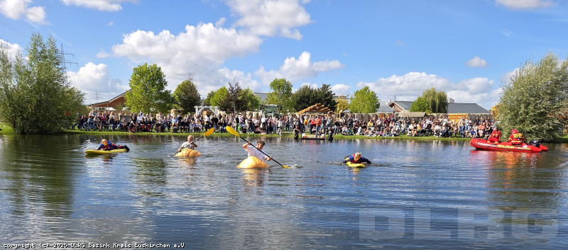 Gestern hat wieder die alljährliche Kürbisregatta am Krewelshof stattgefunden. Wir waren auch wieder am Start und haben die Teilnemer:innen in ihren ungewöhnlichen Booten abgesichert.