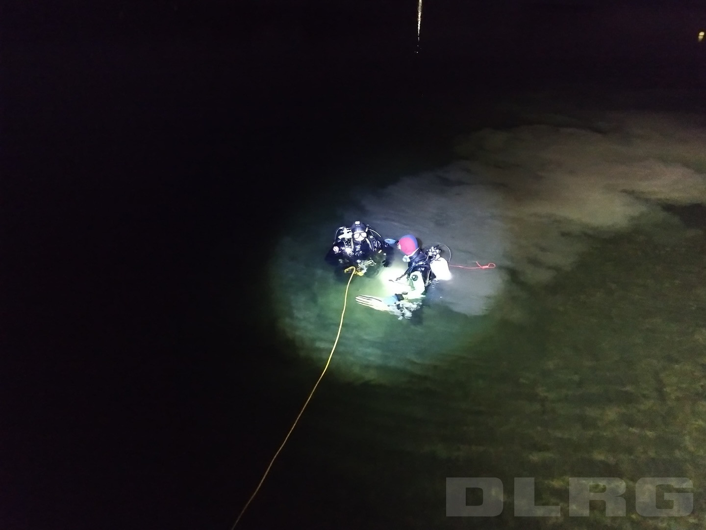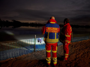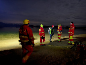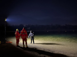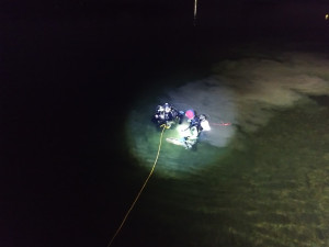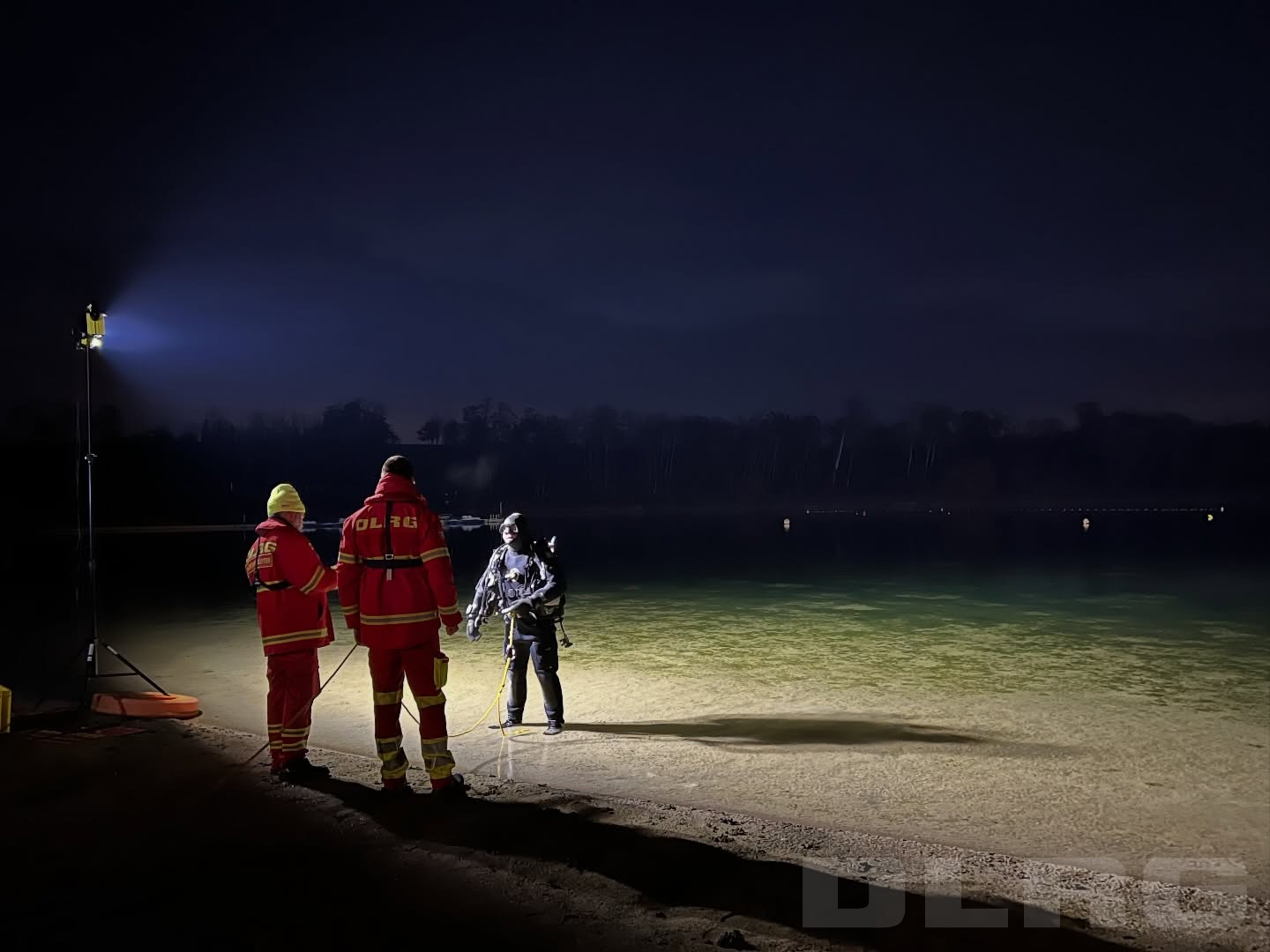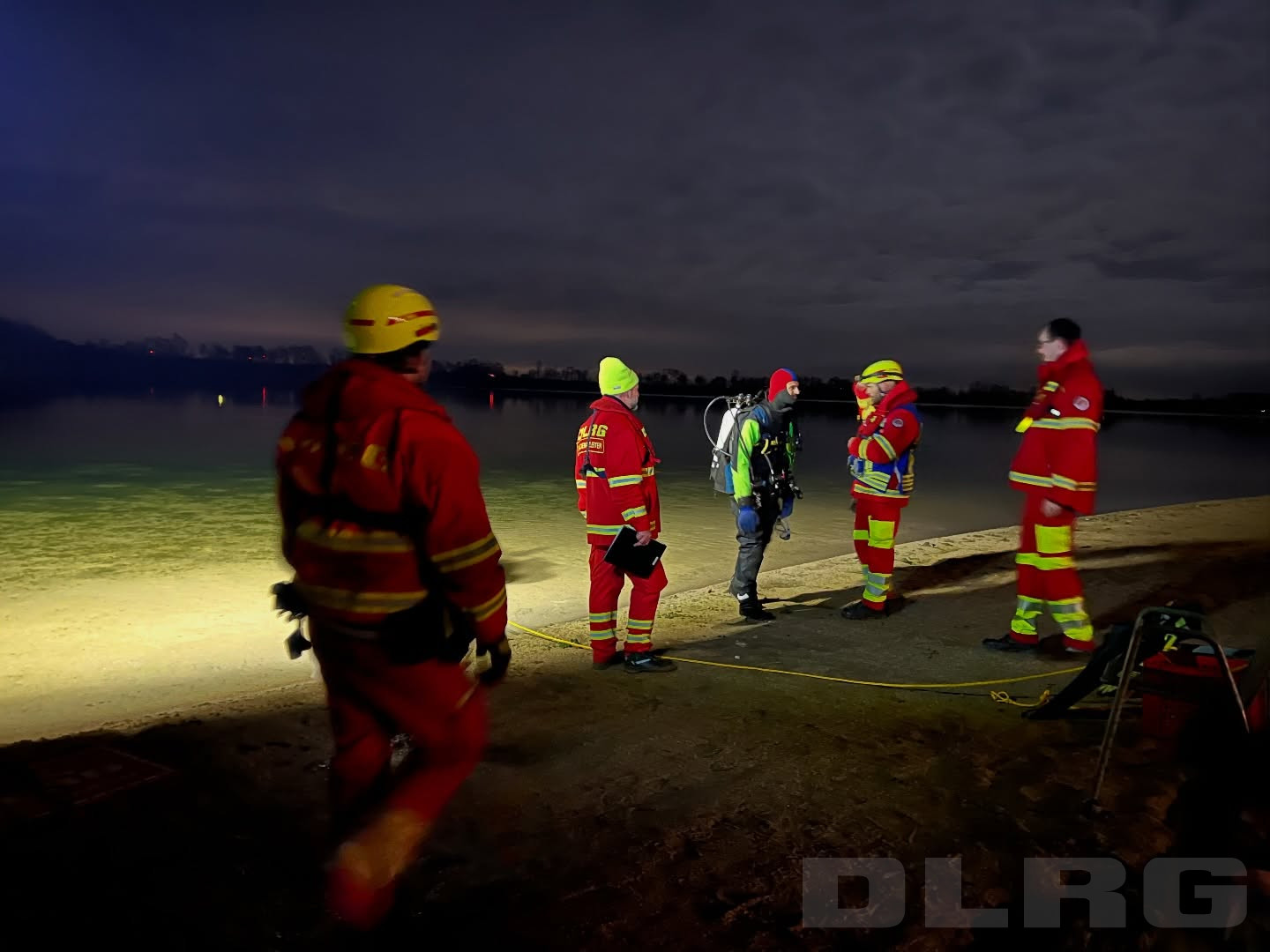 Der Bootstrupp und der Fußtrupp haben das Ufer von beiden Seiten abgesucht und dabei einen Schal gefunden. Daraufhin sind zwei Tauchtrupps bei 4 Grad Wassertemperatur ins Wasser gegangen, um dort nach der Vermissten zu suchen.